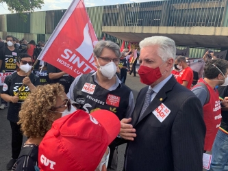 As reuniões desta semana foram com os deputados Nilto Tatto (PT) e Rosana Valle (PSB) — virtualmente —, Darci de Matos (PSD-SC, que relatou a PEC na Comissão de Constituição e Justiça), Samuel Moreira (PSDB), Paulo Teixeira (PT) e Túlio Gadelha (PDT-PE). A todos, os servidores expuseram os prejuízos que a PEC 32 causa aos seus direitos, ao serviço público e à população. Eles também destacaram que no próximo ano as urnas devem rechaçar os parlamentares favoráveis ao projeto. Ainda no aeroporto, na terça-feira, 28 de setembro, o deputado Paulo Pereira da Silva (PDT) posou para fotos segurando o cartaz do Sintrajud contra a 'reforma'.