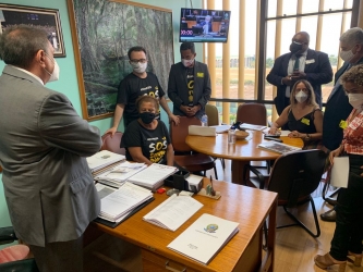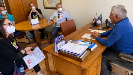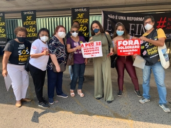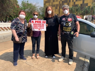 O dia ainda teve um encontro com os senadores Randolfe Rodrigues (Rede-AP) e Rogério Carvalho (PT-SE). Em entrevista coletiva após a sessão da CPI da Covid, Randolfe exibiu o adesivo do Sintrajud para a campanha contra a PEC 32. O senador, que é vice-presidente da CPI, também gravou um vídeo para a campanha.
