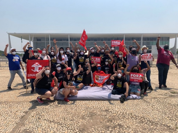 Na terça-feira, 7, eles recepcionaram novamente deputados e senadores no Aeroporto Juscelino Kubitschek, desta vez com um ato que associou a revelação das contas em paraísos fiscais do ministro da Economia, Paulo Guedes, à tentativa do governo de destruir serviços públicos e atacar direitos por meio da “reforma” administrativa.