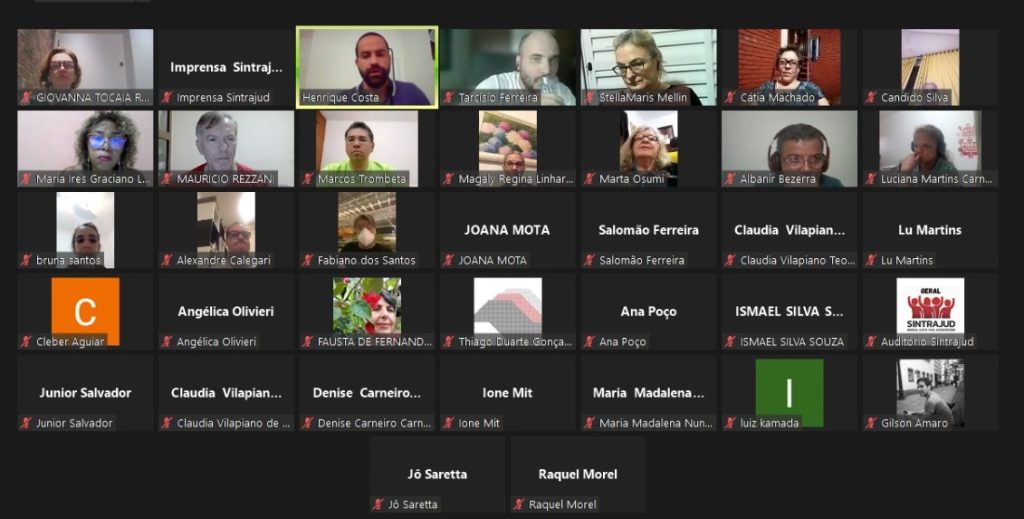 Em São Paulo, diretores do Sintrajud tiveram reuniões virtuais com os deputados Coronel Tadeu (PSL-SP), Herculano Passos (PSD-SP) e Rodrigo Agostinho (PSB-SP). Já ocorreram também reuniões com as assessorias dos deputados Adriana Ventura (Novo), Carla Zambelli (PSL), Ivan Valente (PSOL), a deputada Rosana Valle (PSB-SP) e o deputado Roberto Lucena (Podemos-SP).