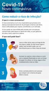 A OMS orienta evitar contatos físicos e ambientes com alta concentração de pessoas, limpar com frequência aparelhos celulares e smartphones, usar lenços descartáveis em caso de tosse ou coriza. Além de evitar tocar olhos, nariz e boca, lavar as mãos frequentemente e procurar atendimento médico imediato diante de qualquer sintoma.