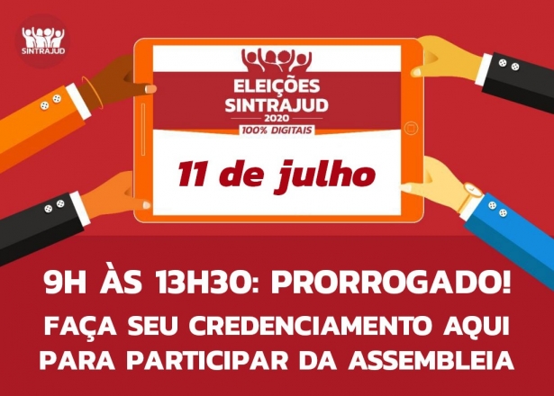 Conforme edital publicado em 18 de junho, na página especial sobre as eleições do Sintrajud e em matéria do último dia 8 de julho, a assembleia deste sábado (11) vai definir a comissão eleitoral que conduzirá o processo 100% digital que elegerá a diretoria executiva e o conselho fiscal que estarão à frente da entidade de 2020 a 2023. Caso tenha interesse em se candidatar à comissão, você deve manifestá-lo no momento do credenciamento.
