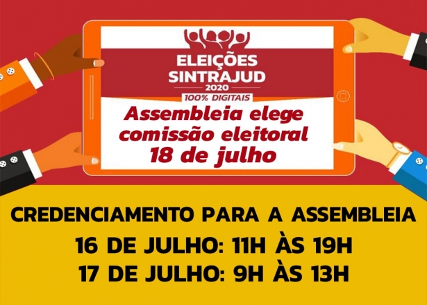 Estará aberto nestas quinta e sexta-feiras (16 e 17 de julho) o credenciamento para participação na continuidade da assembleia para eleger a comissão eleitoral que coordenará o processo das eleições do Sintrajud neste ano. O credenciamento acontecerá das 11h às 19h na quinta, e das 9h às 13h na sexta.