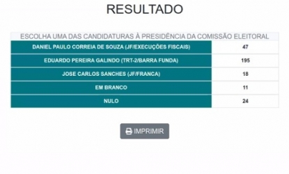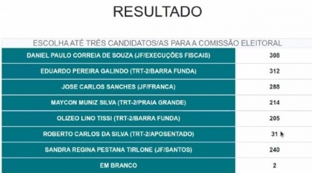 A votação ocorreu após a apresentação dos 7 (sete) servidores candidatos à comissão. O resultado foi: Eduardo Pereira Galindo (312 votos), Daniel Paulo Correia de Souza (308 votos), José Carlos Sanches (288 votos), Sandra Tirlone (240 votos), Maycon Muniz (214 votos), Olizeo Tissi (205 votos) e Roberto Carlos da Silva (31 votos). Houve dois votos em branco. Em uma segunda votação, os servidores escolheram, entre os eleitos, Eduardo Galindo para presidir o colegiado.