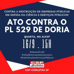16 de setembro: Ato contra o PL 529 e a volta às aulas, às 15h, na Assembleia Legislativa de São Paulo.