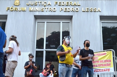 Manifestação organizada pelo Sintrajud em frente ao Fórum Pedro Lessa reuniu mais de 20 entidades e movimentos; unidade entre servidores estaduais e federais vai organizar novas agendas de luta.
