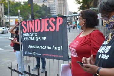 Em Santos, o Sintrajud também participou de uma manifestação que reuniu a Frente Sindical Classista e o Fórum Sindical Popular e da Juventude. O ato começou ao lado do PS da Zona Noroeste e foi seguido de uma caminhada pela região.