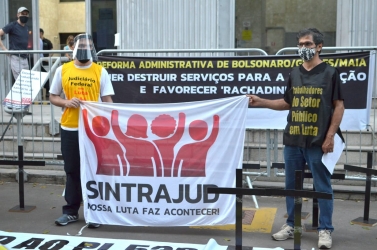 Ao todo, 22 entidades, movimentos sociais e organizações participaram da manifestação organizada nesta quarta-feira pelo Sintrajud em parceria com Fórum dos Trabalhadores do Setor Público no Estado de São Paulo e a Frente Paulista contra a Reforma Administrativa. Respeitando as condições de segurança sanitária, com a presença de alguns representantes de cada uma das instituições convocantes do evento, o ato durou cerca de duas horas.