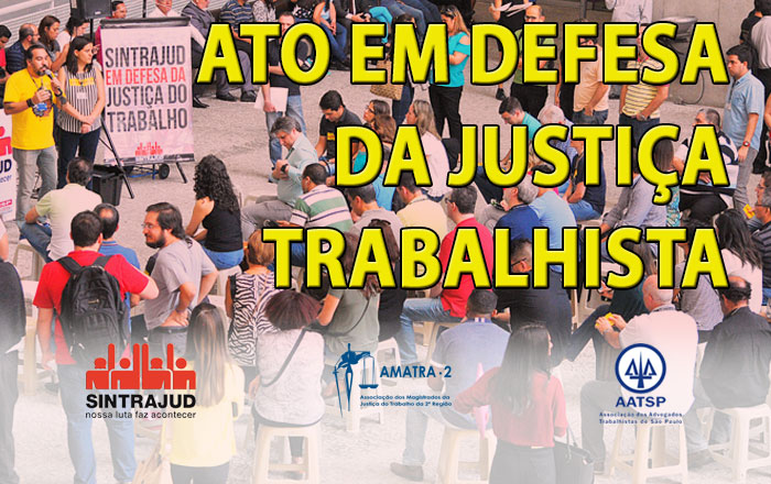 O Sintrajud, a Associação dos Advogados Trabalhistas de São Paulo e a Amatra-2, diante das ameaças de extinção da Justiça do Trabalho, preparam uma manifestação em defesa da Justiça Trabalhista no dia 21 de janeiro, às 10h, no Fórum Trabalhista Ruy Barbosa. O ato contará com a participação de diversas entidades estaduais e federais,