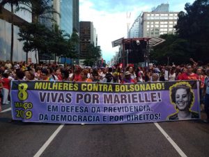 Na última sexta-feira, 8 de março, dezenas de milhares de mulheres ocuparam a avenida Paulista em defesa das aposentadorias, da democracia e dos direitos. O Ato do Dia Internacional de Luta das Mulheres na capital paulista foi a primeira grande manifestação contra o governo de Jair Bolsonaro (PSL) e seus ministros em 2019.O protesto também teve como pauta o enfrentamento às mortes de mulheres associadas às discriminações de gênero e raça, e cobrou justiça para a ex-vereadora carioca Marielle Franco, assassinada em 14 de março do ano passado. O Coletivo de Mulheres do Sintrajud – Mara Helena dos Reis esteve presente na manifestação em São Paulo e em Santos (que aconteceu no mesmo dia e horário).