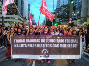 O dia foi marcado por atos em todo o Brasil e em outros países, como Argentina, Itália, Estados Unidos, Alemanha, Espanha, França, dentre outros. Na capital paulista, a manifestação foi acompanhada pelo cortejo do bloco afro Ilú Obá de Min, que tem bateria só de mulheres, em sua maioria negras, e da qual também participa a servidora do TRT-2 Larissa Chryssafidis, integrante do Coletivo de Mulheres do Sindicato.