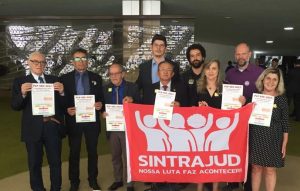 O Sintrajud e a Fenajufe vêm atuando junto com outras categorias contra o projeto. E nesta terça, a delegação do Sindicato que participa da caravana nacional convocada pela Federação da categoria acompanhará o debate sobre o PLS na audiência pública. Estão em Brasília Henrique Sales (servidor do TRT-2 e diretor do Sindicato), Matilde Gouveia (oficiala de justiça do TRT-2), Coaracy Caracas (JF), Márcio Lóis, Assunta De Gaspari e Norival de Souza (aposentados do TRE) e Maria Helena Leal (aposentada do TRF).