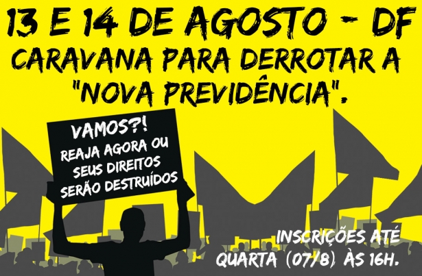 A diretoria do Sintrajud convida os servidores do Judiciário Federal para mais uma rodada de pressão sobre os parlamentares, para que votem contra a PEC 6/2019, da ‘reforma’ da Previdência. O Congresso Nacional retomou os trabalhos e o governo pressiona para que a votação no plenário da Câmara dos Deputados, em segundo turno, aconteça o mais rápido possível, por isso, a pressão dos servidores é fundamental. Será a quarta caravana em pouco mais de um mês, e dessa vez os participantes deverão permanecer em Brasília nos dias 13 e 14 de agosto.