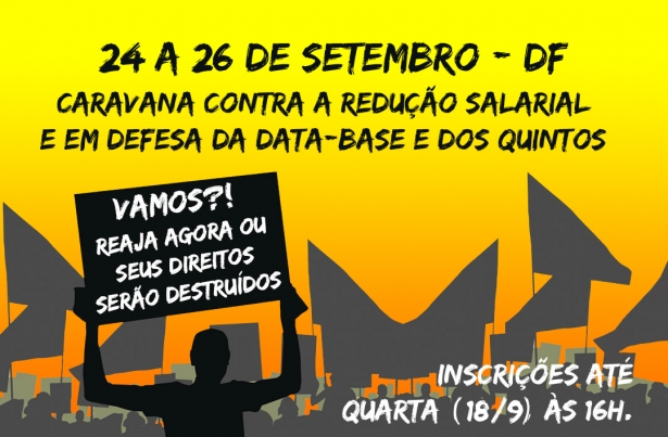 Estão abertas até a próxima quarta-feira, 18 de setembro, às 16 horas, as inscrições para mais uma caravana que levará a Brasília representantes dos servidores do Judiciário Federal no Estado de São Paulo, contra a redução salarial e a ‘reforma’ da Previdência.