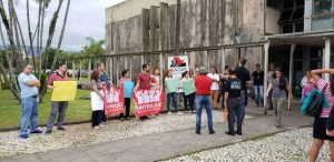 Na segunda-feira (25 de novembro) dirigentes do Sindicato e servidores participaram dos atos unitários convocados pela Frente Sindical Classista. As manifestações ocorreram em frente aos fóruns do judiciário estadual em Santos e na Praia Grande.