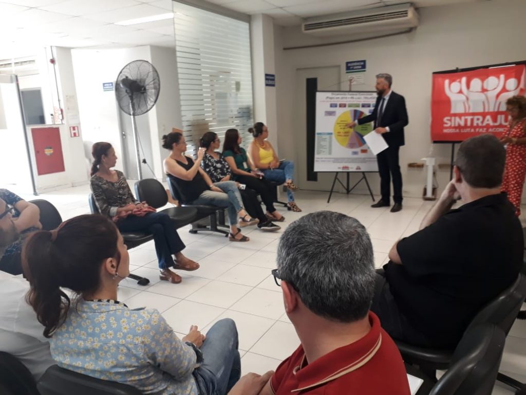 No último dia 21 o coordenador do departamento Jurídico, o advogado César Lignelli, realizou a terceira palestra este mês na região sobre os impactos do 'Pacote de Maldades' do governo Bolsonaro nas vidas dos servidores. Desta vez a conversa foi com os trabalhadores do Judiciário Federal no Fórum Trabalhista de São Vicente. Já tinham sido realizados diálogos para mobilização na JT em Santos e Praia Grande.Confira aqui como as medidas do Plano 'Mais Brasil' impactam a sua vida