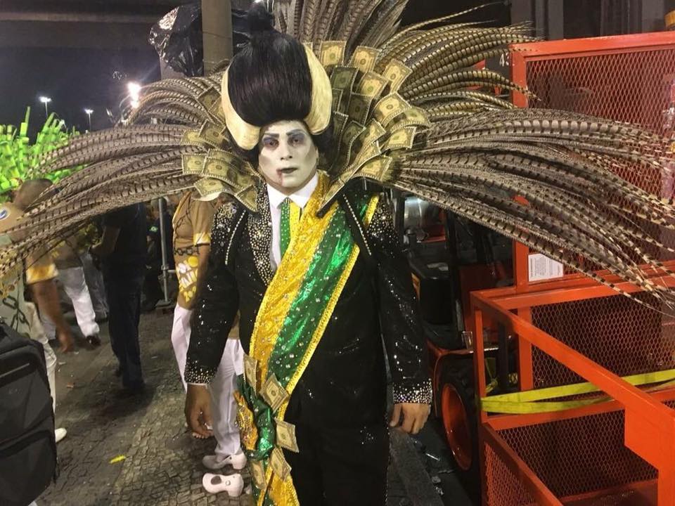 Postagens convocando um protesto no Sambódromo durante a apuração já vinham circulando pelas redes sociais antes mesmo do desfile. Mas multiplicaram-se a partir da imensa repercussão da passagem pela avenida da agremiação de uma favela em morro homônimo no bairro de São Cristóvão.A escola levou para a Marques de Sapucaí críticas diretas ao governo Temer – inclusive com um destaque fantasiado de vampiro e com faixa presidencial –, à reforma trabalhista, associada à exploração dos trabalhadores e à escravidão. Os manifestantes que foram às ruas com o 'pato da Fiesp', no processo que levou Temer à Presidência, foram representados como fantoches.