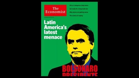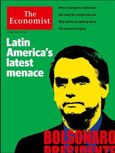 A revista norte-americana 'The Economist' - insuspeita de esquerdismo - dedicou a capa da edição de setembro ao candidato. Para a publicação, Bolsonaro representa "a mais recente ameaça da América Latina". A reportagem afirma ainda que o capitão "populista de direita" seria "um presidente desastroso" que colocaria o país em risco de piorar ainda mais a situação de "desastre econômico", "compressão das finanças públicas" e "podridão política".