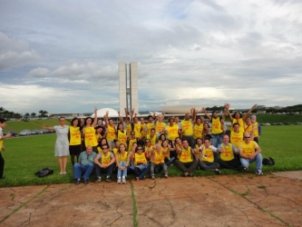 Mara, na primeira fileira de servidores, ao centro da foto, em manifestação da categoria em Brasília, no ano de 2011 (Arquivo Sintrajud).