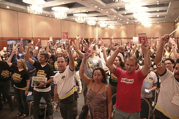 Aos gritos em coro de “Fora Temer”, os participantes da reunião ampliada aprovaram por unanimidade um calendário de mobilização que prevê trabalhar para a construção de uma greve geral que paralise o país e expresse a insatisfação popular com as “reformas” previdenciária e trabalhista, que o presidente Michel Temer tenta aprovar a passos largos no Congresso Nacional.