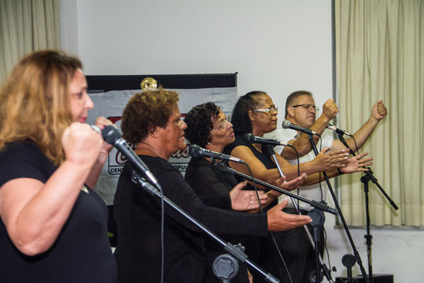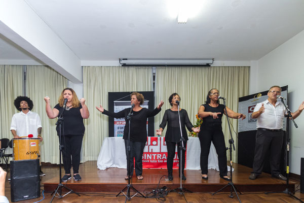 A noite de abertura do 8º Congresso do Sintrajud, nesta quinta-feira, 23, terminou com uma apresentação do grupo de teatro Erga Omnes, do Sintrajud. O grupo de teatro composto por servidores do Judiciário Federal apresentou um trecho do espetáculo "Rebeldia, rebeldia", de Maria Cecília de Toledo, a Cilinha, sob a direção do dramaturgo, professor e diretor teatral Jairo Maciel.