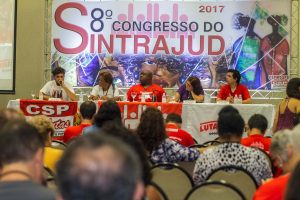 “A nossa luta é todo dia contra o machismo, racismo e homofobia”, foi a palavra de ordem cantada pelos servidores no painel de debate sobre opressões que abriu o terceiro dia do 8º Congresso do Sintrajud. A mesa que contou com a participação de Carlos Eduardo Costa, do Espaço Socialista, Érika Andreassy, do Movimento Mulheres em Luta, e Francisco Antero, servidor do TRF-3, resgatou o debate de combate ao machismo, racismo e LGBTfobia, tema que não foi pautado nas ultimas edições do congresso.