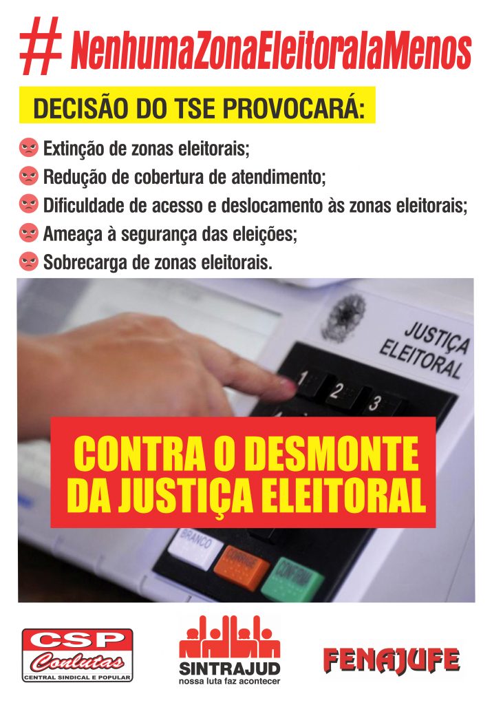 Manifestação será parte do dia nacional de luta contra a extinção de zonas eleitorais. Quando: 14hOnde: TRE-Miquelina