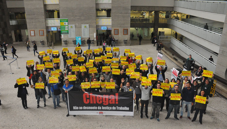 “Para garantir a política de ajuste fiscal, o Governo está aplicando medidas como um rolo compressor contra os servidores públicos e a cúpula do Judiciário está muito alinhada com esse projeto”, afirmou Tarcísio Ferreira, servidor do TRT e diretor do Sintrajud.