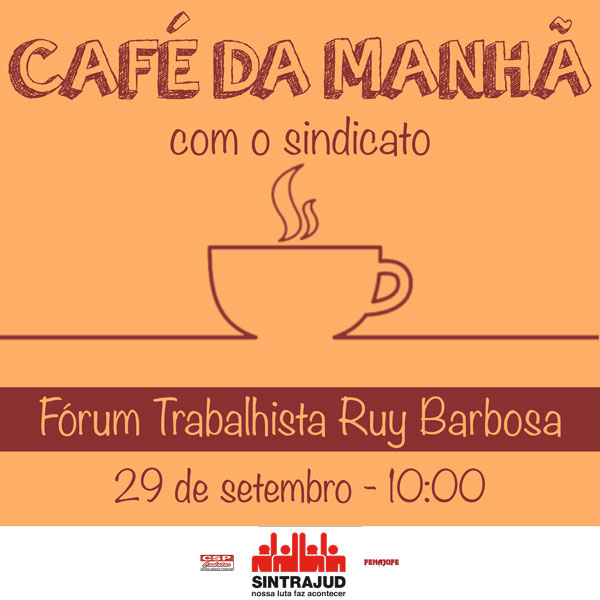 Nesta sexta-feira, 29, às 10h, acontece café da manhã no Fórum Trabalhista Ruy Barbosa, que terá como pauta a discussão sobre o tema.