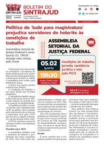 03/02/2025 - Boletim do Sintrajud - TRF-3 - Política do ‘tudo para magistratura’ prejudica servidores do holerite às condições de trabalho
