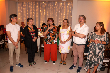 "Festa ótima! Estou aposentada e aqui reencontrando colegas que não via há muito tempo. Os salgados, o som, tudo maravilhoso". Assim a servidora aposentada da Justiça do Trabalho na cidade de Santos Cristina Brandão (a segunda, da esquerda para a direita na foto, de marrom) avaliou a festa realizada na última sexta-feira (05 de dezembro), no espaço Hedwig Eventos, no bairro do Gonzaga, em Santos. O evento celebrou os 29 anos da subsede na região da Baixada Santista e os 30 anos do Sintrajud.