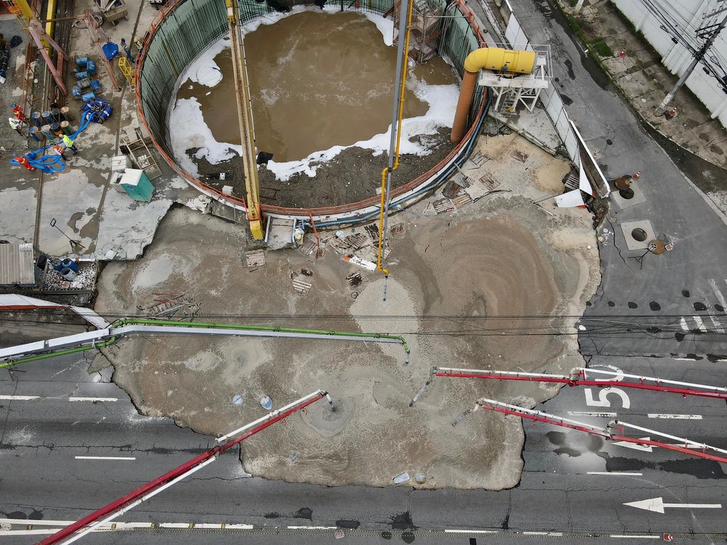Imagens divulgadas após a concretagem da cratera dá a dimensão do problema (Fotos: Arquivo do Governo de SP).
