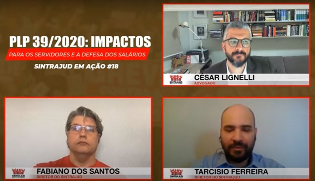 “Diante da pior crise sanitária do século, a resposta do governo é retirada de direitos dos trabalhadores e destinar mais dinheiro para os bancos, e se a gente não se organizar vai piorar”, esta foi a conclusão do advogado César Lignelli, coordenador do departamento Jurídico do Sindicato, durante a live  que aconteceu nesta quinta-feira, 8 de maio. O bate-papo virtual abordou os impactos do Projeto de Lei Complementar 39/2020 na vida dos servidores públicos, com a participação dos dirigentes Fabiano dos Santos e Tarcisio Ferreira.