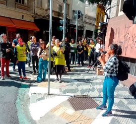 Repúdio ao assédio moral e à falta de condições de trabalho, que têm levado ao adoecimento da categoria, foram pautados no ato que reuniu servidoras e servidores, além de representantes de movimentos sociais, no início da tarde dessa quinta, 18 de maio.Foi descrita uma realidade de sobrecarga de trabalho e assédio moral, muitas vezes de forma institucionalizada, que potencializa o adoecimento. A decisão pela realização da atividade se deu após o suicídio de dois colegas, um deles dentro da sede da entidade, na Rua Riachuelo, no Centro/SP.