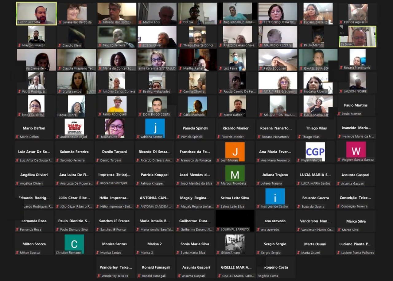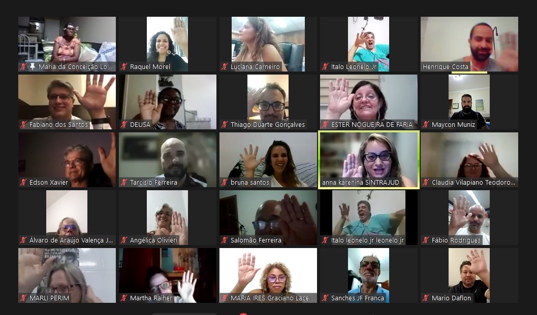 - CONECTE-SE À SALA VIRTUAL QUE O SINTRAJUD ABRIRÁ NOS DOIS DIAS — UM ESPAÇO PARA ACOMPANHAR PALESTRAS, TROCAR INFORMAÇÕES E TIRAR DÚVIDAS.