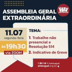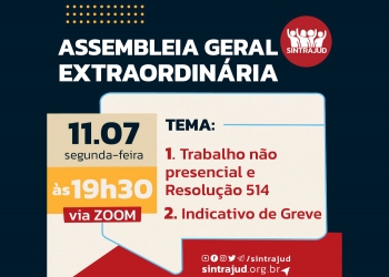 EDITAL DE CONVOCAÇÃO DE ASSEMBLEIA GERAL EXTRAORDINÁRIA DO SINTRAJUD/SP – 11/07/2022