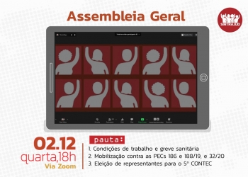 Assembleia geral no dia 2 debate greve sanitária e luta contra ‘reforma’ administrativa