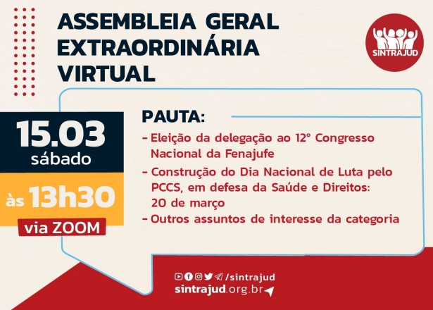 Edital de Convocação da Assembleia Geral Extraordinária VIRTUAL do Sintrajud/SP – 15/03/25