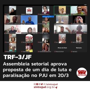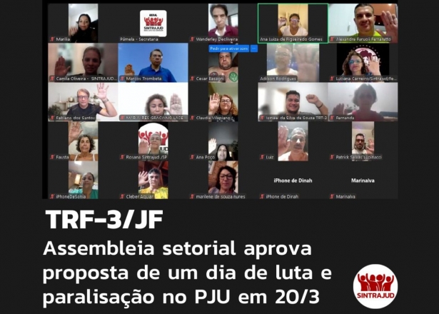 A assembleia setorial que reuniu servidoras e servidores da Justiça Federal e do Tribunal Regional Federal da 3ª Região, em São Paulo, ratificou a proposta de realização de um dia de luta e paralisação em 20 de março de 2025. O indicativo está sendo analisada nas assembleias setoriais dos tribunais e estará nas pautas do Conselho de Base, já marcado para o dia 22 de fevereiro, e da assembleia geral da categoria.A paralisação está sendo encaminhada pela federação nacional (Fenajufe) e busca pressionar as cúpulas que administram o Judiciário Federal e o MPU, o governo Lula/Alckmin e o Congresso Nacional, para que dialoguem com a categoria e incluam as demandas dos servidores no Orçamento da União. A assembleia ocorreu na noite da quarta-feira (5), por meio virtual. Servidoras e servidores constataram que está em curso um verdadeiro ‘sequestro’ do orçamento pela magistratura, em detrimento das demandas da categoria. Associado ao ajuste fiscal que o governo federal conseguiu aprovar no Congresso Nacional, forma-se um quadro orçamentário que tem reflexos em todos os aspectos da vida profissional dos servidores: na não reposição das perdas salariais, no não encaminhamento da reestruturação das carreiras (PCCS), nas condições precárias de trabalho e no ataque ao Regime Jurídico Único.Este último aspecto gera um movimento por parte das administrações de pouco empenho em promover concursos públicos e em dar posse a concursados, buscando outros modelos precarizados de contratação. É o caso das terceirizações e residência jurídica, recentemente implantada na Justiça Federal em São Paulo, firmemente repudiadas na assembleia.Condições de trabalho Outros pontos muito abordados na assembleia foram as condições de trabalho e os impactos da implantação do Judiciário 4.0. As situações precárias do Fórum da Justiça Federal em Santos, do Administrativo e das Execuções Fiscais foram mencionadas. Ressaltou-se a necessidade de unificar a luta para exigir melhores condições de trabalho. Após os debates, aprovou-se como posição geral defender o direito ao teletrabalho para servidores que estejam submetidos a situações laborais precárias, até serem restabelecidas as condições adequadas. De imediato, será solicitado o teletrabalho para o prédio do Administrativo.Ao analisar as consequências do modelo de varas digitais do Judiciário 4.0, os participantes assinalaram que na Baixada Santista essa proposta aponta para o fechamento de varas e a redução de cerca de dois terços do número de servidores. Foi consensual a avaliação de que é preciso estudar mais esse processo e definir políticas para incidir e defender os direitos laborais da categoria. Construir a mobilização nacionalTodos estes aspectos foram muito debatidos na assembleia, que convergiu para a avaliação de que é fundamental construir um forte e unitário movimento nacional. É urgente pôr em marcha a construção da greve, defenderam servidores e servidoras. Para enfrentar tanto o ajuste fiscal do governo, quanto pressionar as administrações a rever essa política, negociar com as entidades sindicais e atuar para que as pautas da categoria sejam finalmente inseridas no Orçamento da União de 2025 — ainda não aprovado pelo Congresso Nacional.As deliberações da assembleia incluem ainda construir a luta pelo PCCS com reposição das perdas salariais; defender o Regime Jurídico Único e combater todas as formas de contratações precarizadas voltadas para ocupar o espaço dos servidores estatutários, entre elas a residência jurídica. Também se aprovou, por consenso, fortalecer a lutar pela isonomia entre juízes e servidores no pagamento do auxílio-saúde.