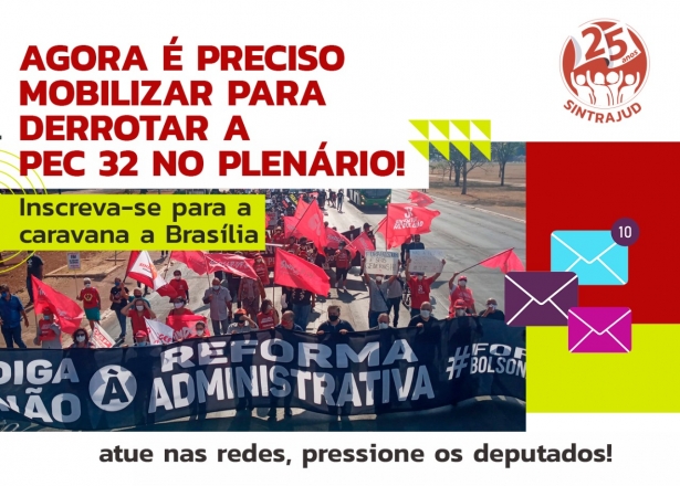 Quando esta matéria foi publicado estavam sendo discutidos os destaques ao substitutivo, que trouxe de volta a autorização para redução salarial e de jornada em até 25%, contratações "temporárias" por até 10 anos para substituir servidores efetivos, a exclusão da maioria do funcionalismo - inclusive na carreira Judiciária - dos chamados "cargos exclusivos de Estado" e a possibilidade de contratação de agentes privados para prestar serviços públicos. Diante do aumento da intensidade do "trator" imposto pelo Planalto e seus aliados, o Sintrajud está convocando uma assembleia para este sábado e uma nova caravana à capital federal na semana que vem.
