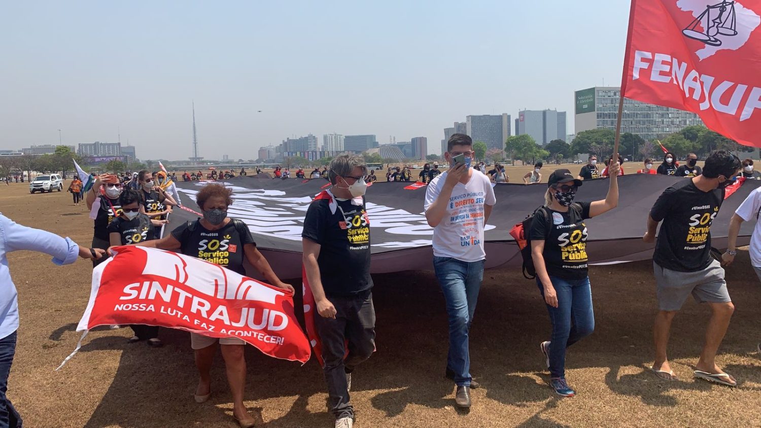 Servidores do Judiciário em ato nesta quarta-feira (22), parte das atividades da caravana desta semana (crédito: Valcir Araújo)