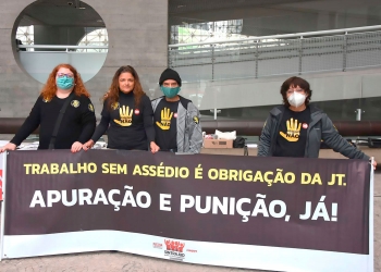 A coordenadora do Coletivo Mara Helena dos Reis – Coletivo de Mulheres do Sintrajud, a diretora Luciana Carneiro avaliou a importância do Sindicato, em parceria com outras entidades, como o Movimento Me Too e o Sindicato dos Advogados e Advogadas (SASP), para atuar contra a impunidade no TRT-2, exigindo que o juiz fosse punido e repudiando a decisão do arquivamento do caso, bem como a importância da campanha “Assédio Não”. Ela rememora o arquivamento de PADs no tribunal, criticando o que classificou como proteção, que teria sido dada pelo corregedor do TRT-2 à época, Sergio Pinto Martins a Scalercio. “Um amigo o protegeu, passou pano e mais uma vez revitimizou as mulheres que ousaram denunciar o magistrado no tribunal”, relembra.