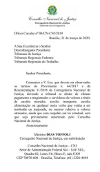 Logo no começo da quarentena imposta com a pandemia do novo coronavírus e a suspensão do expediente presencial nos tribunais, em 31 de março deste ano o presidente do CNJ determinou que o pagamento de diversos benefícios deveria ser submetido prévia autorização do Conselho (foto).Na sequência, os tribunais regionais federais e do Trabalho suspenderam o pagamento integral da indenização de transporte dos oficiais de justiça (integralmente na JT com base em resolução do conselho superior e sem a comprovação de diligência externa na JF, onde os oficiais continuaram realizando atividades de rua para cumprimento de mandados urgentes). O segmento e o Sindicato destacam que os gastos com manutenção dos veículos próprios que os oficiais utilizam para trabalhar não foram suspensos, e na volta ao expediente normal esses servidores terão de cumprir diligências que não tenham sido realizadas no período de suspensão das atividade presenciais.