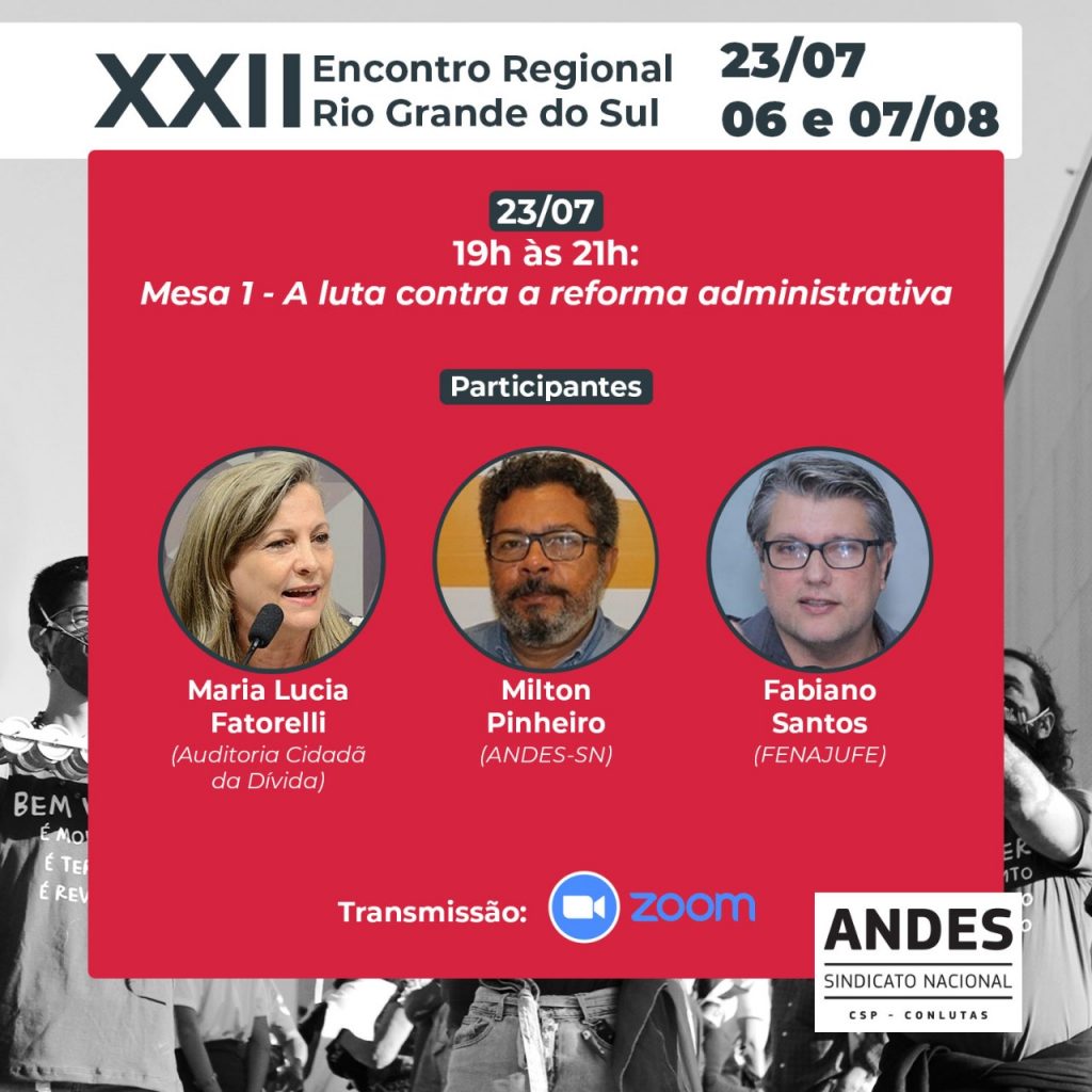 Fabiano estará na primeira mesa de debates do Encontro, às 19h30, que também tem como debatedores Maria Lúcia Fattorelli, da Auditoria Cidadã da Dívida, e Milton Pinheiro, da diretoria do ANDES-SN. A mesa vai discutir “A luta contra a reforma administrativa”.