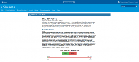 Vote clicando na imagem.[/caption]Qualquer cidadão pode votar nas consultas públicas da Câmara e do Senado, às quais são submetidas todas as proposições que tramitam nas casas legislativas durante o processo de discussão parlamentar. Cada usuário pode votar apenas uma vez, pois é necessário realizar um cadastro, o que torna a consulta mais confiável. Os parlamentares recebem relatórios periódicos das manifestações do eleitorado em seus gabinetes.