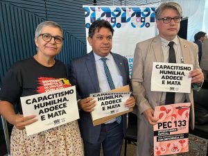 Na quarta e quinta-feiras ainda conversaram com os deputados Geraldo Resende (PSDB/MS), Márcio Jerry (PCdoB/MA), Sâmia Bomfim (PSOL/SP) e Marcio Honaiser (PDT/MA) sobre as demandas da categoria e o enfrentamento ao capacitismo — discriminação contra pessoas com deficiência, que no contexto de trabalho é apontado pelo Sindicato como mais uma forma de assédio moral.