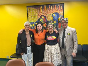 Sâmia Bomfim com os servidores Denise Carneiro (Fenajufe e Sindjufe/BA), Rosana Nanartonis e Fabiano dos Santos (Arquivo Sintrajud).