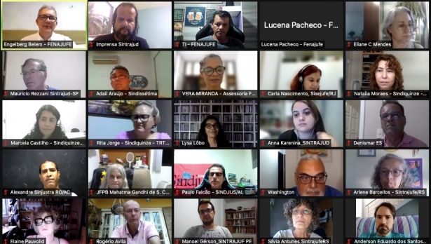 A luta pela valorização do cargo e da carreira judiciária é também a luta para afastar um modelo de 'reforma' administrativa que vê a servidora e o servidor públicos como peças descartáveis, a serem substituídas no processo de precarização do trabalho. Esta foi uma das constatações destacadas no 6º Encontro do Coletivo Nacional da Fenajufe de Técnicos do Judiciário e do MPU (Contec), realizado no sábado - dia 29 de janeiro de 2022, por videoconferência (imagem acima). O evento, que começou pela manhã e foi concluído no início da noite, teve como ponto central de pauta a campanha pela alteração da escolaridade para ingresso na carreira de técnico judiciário para nível superior (NS) — demanda da categoria aprovada nos seus fóruns sindicais deliberativos.