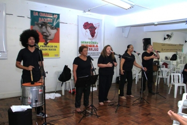 “Temos menos acesso às consultas de pré-natal, os médicos ficam menos tempo conosco e fazem procedimentos cirúrgicos dolorosos sem anestesia ou com menos anestesia [do que com as mulheres brancas]”, explicou Leila Rocha, pós-graduada em Gestão de Políticas Públicas com recorte em gênero e raça.O grupo de teatro Erga Omnes, apoiado pelo Sintrajud, apresentou trechos do espetáculo “Rebeldia, Rebeldia”, de Maria Cecília Toledo e Carlos Ricardo, sob a direção de Jairo Maciel, com músicas, poemas e textos de denúncia da situação dos negros e negras no país.