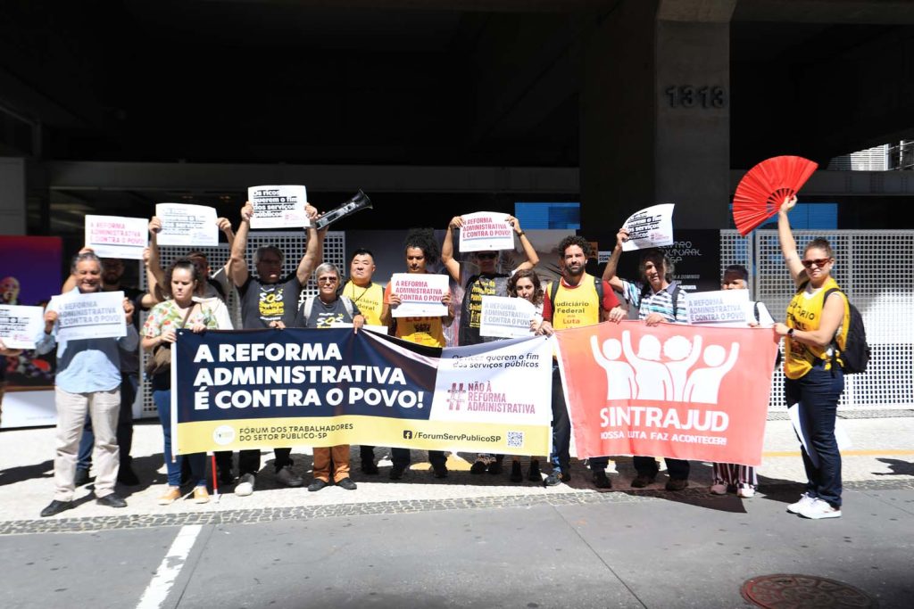 Do lado de fora, na entrada da Fiesp, na av. Paulista, representações de entidades sindicais, entre elas o Sintrajud, denunciavam que o modelo de reforma constitucional pautado é 'contrário aos interesses do povo’. E que reiteradamente tem como alvos os cerca de 12 milhões de servidores e servidoras municipais, estaduais e federais, cuja imensa maioria das remunerações está a distância abissal inclusive dos salários regulares dos magistrados. O ato fora convocado pelo Fórum dos Servidores Públicos no Estado de São Paulo.